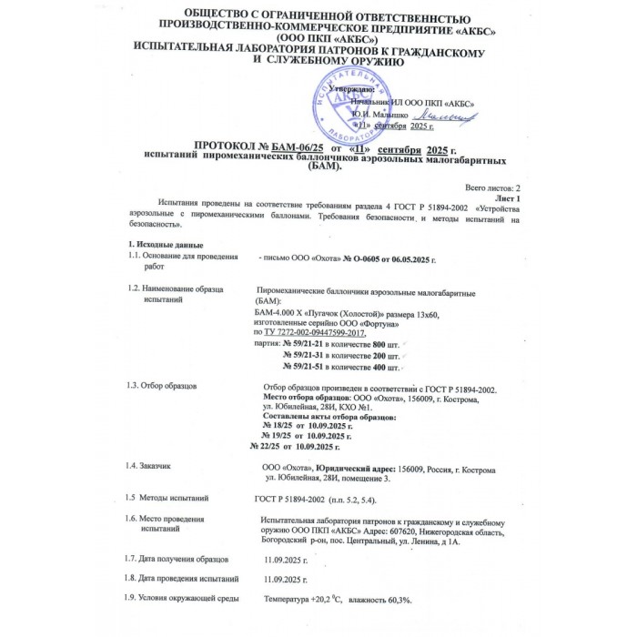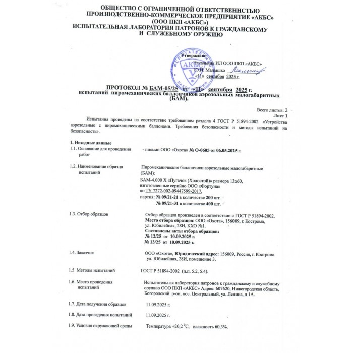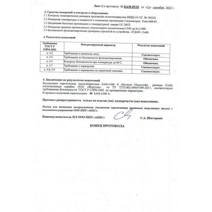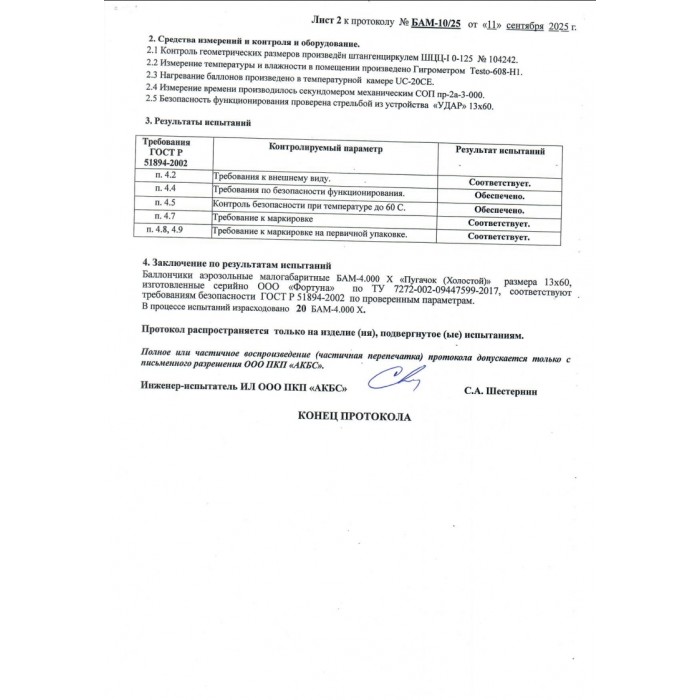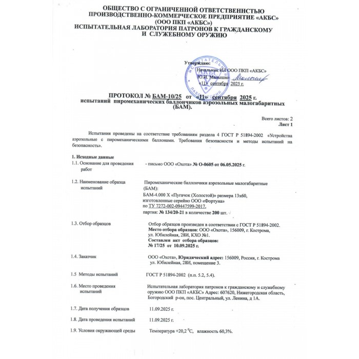 | Применение: | аэрозольные устройства «Удар М2», «Добрыня», «Пионер» |