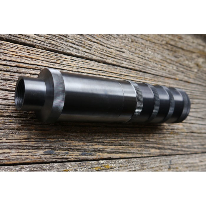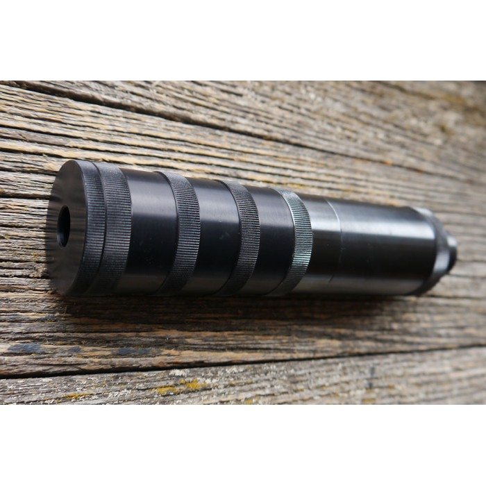 ДТК (дульный тормоз компенсатор) закрытого типа "Калибр" под патрон .366ТКМ с дожигателем, предназначен для беспламенной стрельбы в любое время суток,в особенности на охоте с прицелами ночного видения. ДТК имеет конструкцию из пяти скручиваемых между собой камер и одного дожигателя (пламягасителя) по типу Крынкова. Для предотвращения раскручивания при стрельбе использовать фиксатор резьбы (в комплекте).