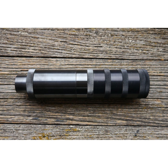 Данная система позволит владельцу оружия наращивать объём ДТК путём накручивания дополнительных камер, так и наоборот,превратить устройство в маленький и легкий пламегаситель. Первые две камеры сделаны из стали для придания устройству большей прочности и износостойкости.