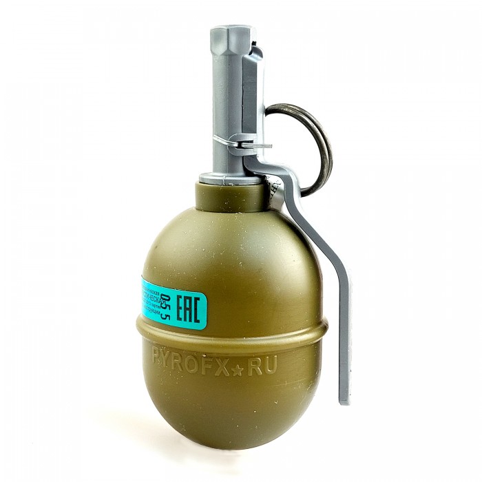 Имитация условно-осколочного и звукового эффектов от разрыва ручной гранаты, для военно-спортивных игр и обучению навыкам обращения с ручными гранатами.