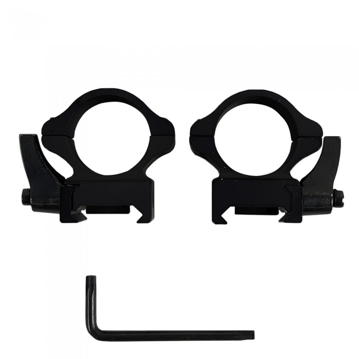BH-RS46 – низкопрофильные быстросъемные кольца, с высотой посадки 9 мм, пригодится для установки оптических и коллиматорных прицелов с размером трубки 25,4 мм и диаметром объектива до 55 мм, на планку Weaver. Корпус выполнен из алюминиевого сплава, поверхность анодирована, устойчива к коррозии. Для фиксации на монтажной планке используется рычажный механизм, что делает установку простой и быстрой.