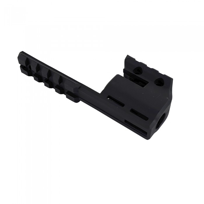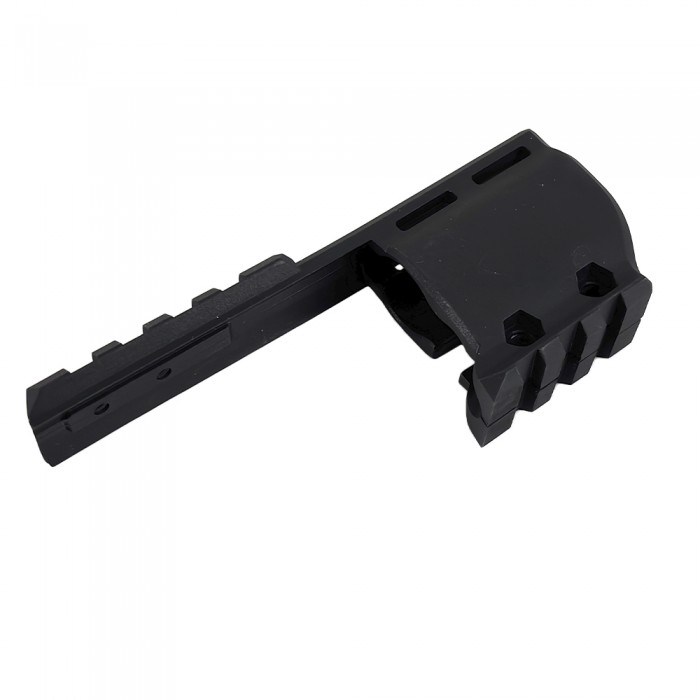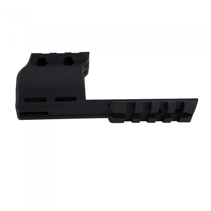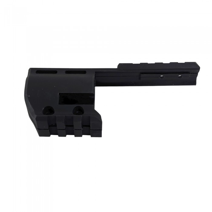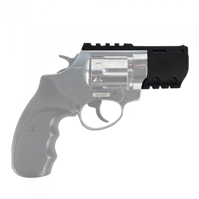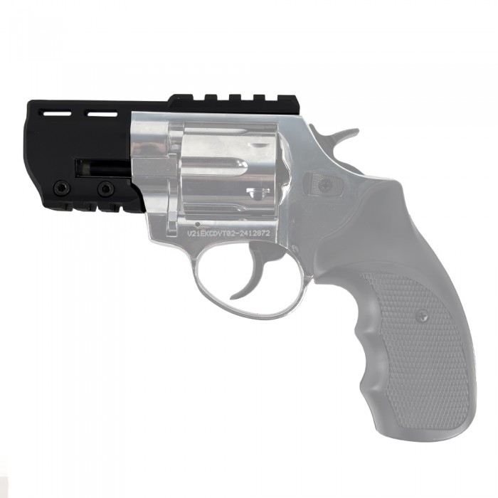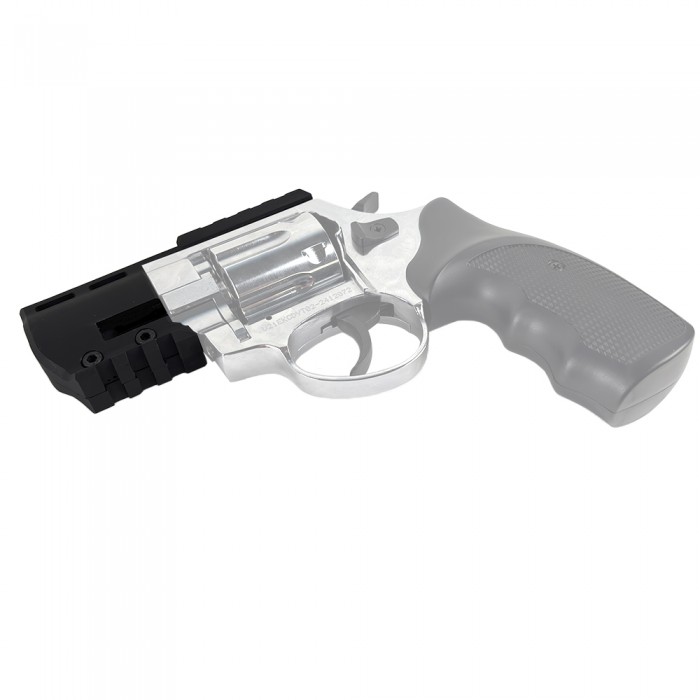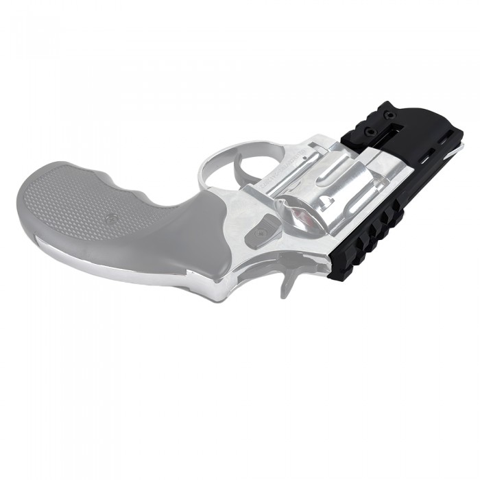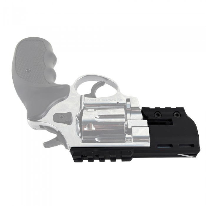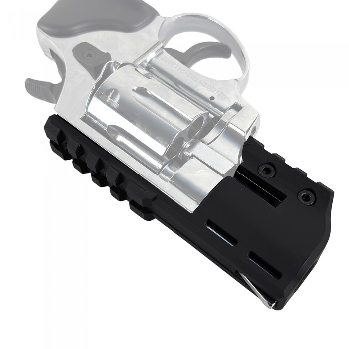 Изделие выполнено из легкого и в то же время прочного современного полимера черного цвета. Кронштейн уверенно выдерживает вибрации при выстреле и весит 26.6 г, не нарушая баланс револьвера. Монтаж максимально прост и осуществим в домашних условиях - потребуется надвинуть кронштейн на ствольную часть и закрутить два винта комплектным ключом.