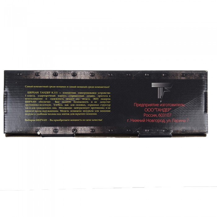ШЕРХАН ТАНДЕР К 111 мини — контактное электрошоковое устройство 1 класса, ударопрочный корпус, современный дизайн, простота в использовании и надежность делают эту модель ЭШУ лидером. ШЕРХАН мини обеспечит Вам полную безопасность и не допустит противника вплотную. Удобен, как для силовых, охранных структур так и для гражданских лиц. Мгновенно нейтрализует противника и не наносит вреда окружающим. Модель оснащена шнурком для ношения на руке и удобным чехлом под зонтик для скрытого ношения.