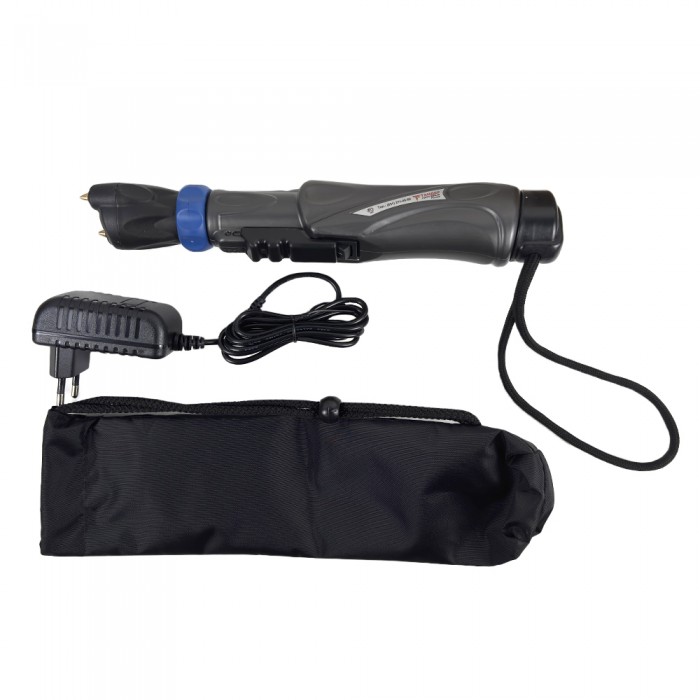 ЭШУ имеет современный дизайн и очень удобную, эргономичную рукоять. Заряда аккумуляторной батареи хватает на 100 — 200 разрядов по 1 — 3 секунды. Масса, кг: 0,3 Габариты: 250*60*60