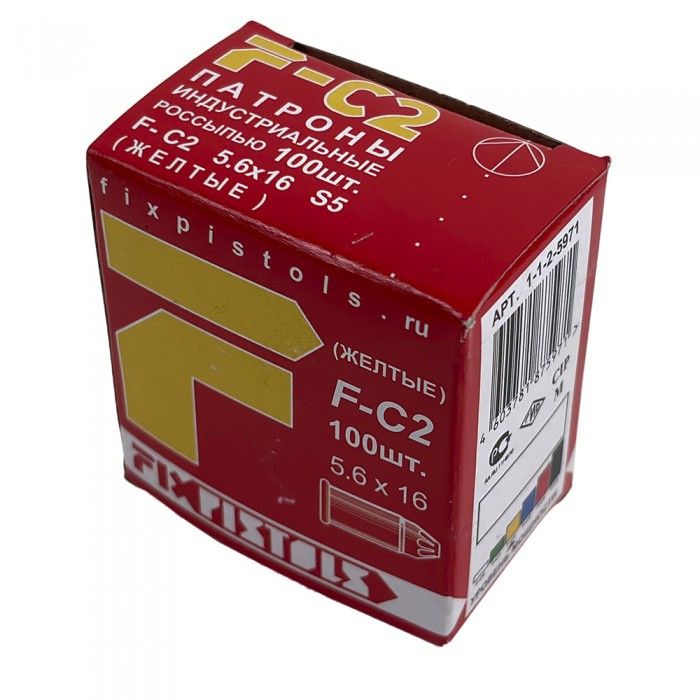 Монтажные (индустриальные) патроны. Цветовая маркировка патрона указывает на мощность выстрела. Черные, красные и синие патроны используются для высокопрочных марок бетона от B25 и стали, а желтые, зеленые и белые для более слабых марок бетона до B25 и кирпича. Мощность 250±50 Дж. Для пороховых монтажных пистолетов: WALTE PT60 , GNP700C.