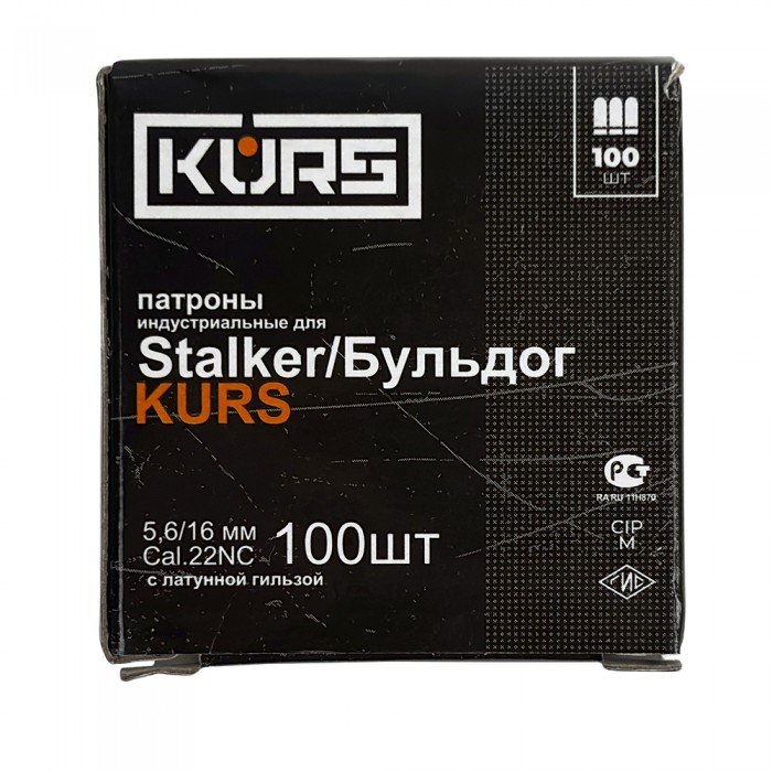 Калибр данных патронов составляет 5.6х16 мм, а в одной упаковке содержится 100 единиц. Они совместимы с пистолетами STALKER, Бульдог KURS и другими моделями, использующими аналогичные патроны.