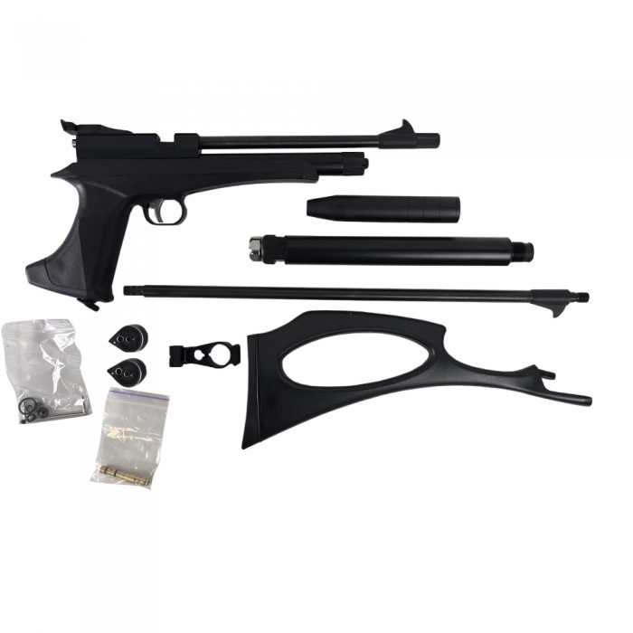 Оружие с резервуаром ВД может использоваться как пистолет, так и как винтовка. Трансформация пистолета в винтовку и обратно проста и не занимает много времени. Замена ствола производится откручиванием трёх винтов в казённой части. Монтаж съемного полимерного приклада производится откручиванием винта-барашка на рукоятке.