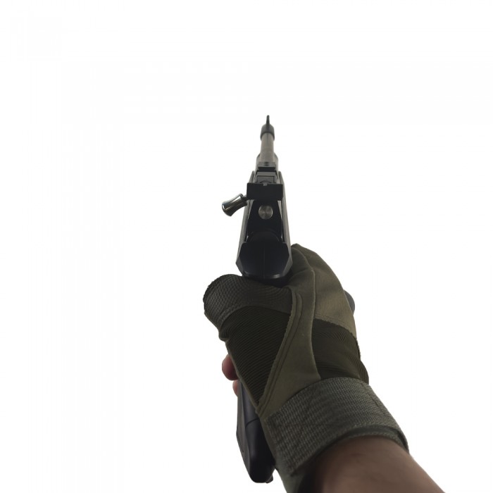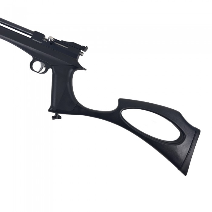 Левостороннее расположение рукоятки затвора, как у спортивных пистолетов, позволяет стрелку взводить пистолет-винтовку левой рукой, а правой – удерживать орудие за рукоятку.