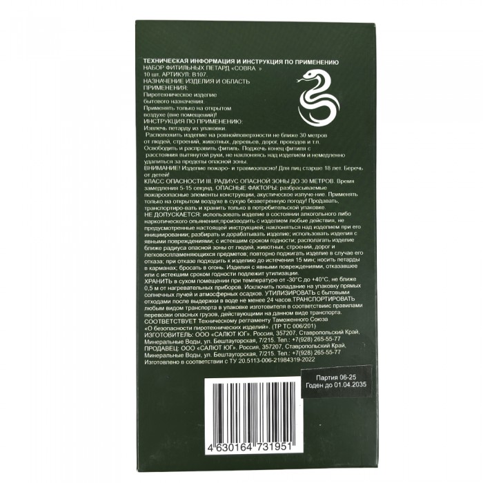 Петарды Кобра B107 - очень мощные петарды Кобра, упаковка из 10 штук.