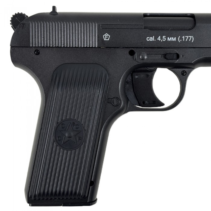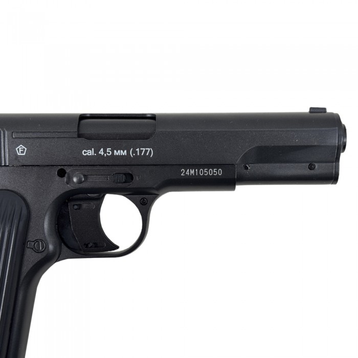 В каталоге предприятия нашлось место для новой модели по мотивам Тульского Токарева. Изделие отличается от прошлого используемыми материалами - теперь кожух ствола и рамку изготавливают из металла, что сделало пневматический пистолет ТТ аутентичнее с точки зрения внешности и эргономики. Кроме того, рассматриваемое решение повысило надежность.