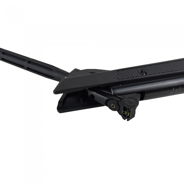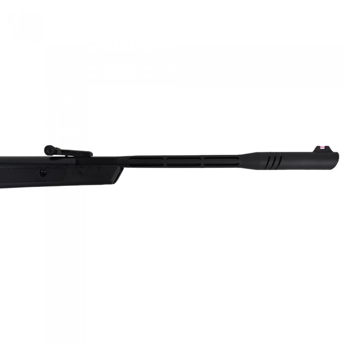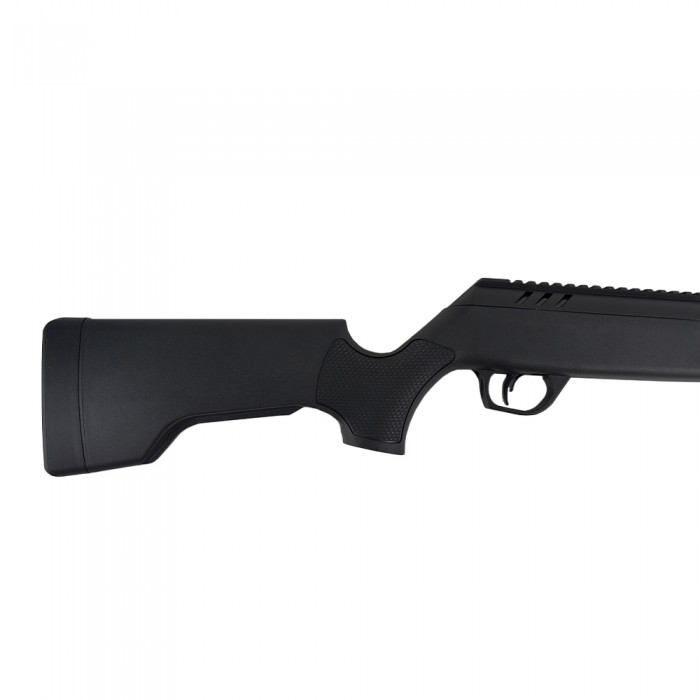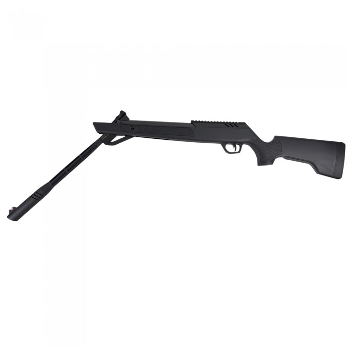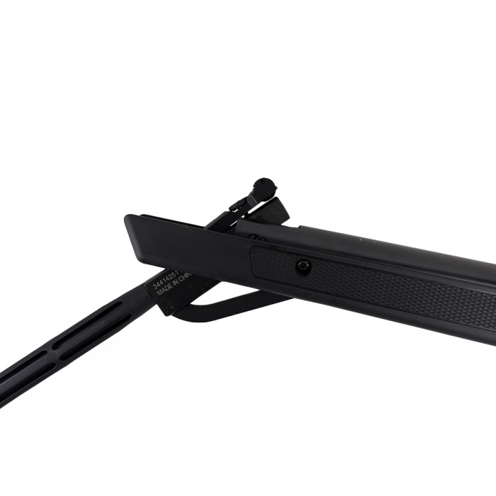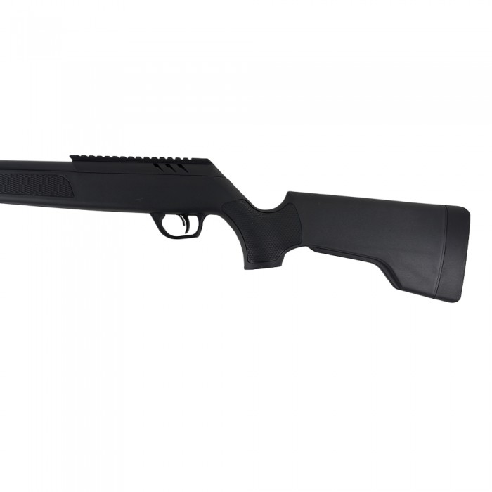 Эта модель оснащена магазином на одну пулю, а также регулируемым целиком и мушкой, что обеспечивает точность прицеливания и комфорт при стрельбе. Рабочая длина составляет 1200 мм, длина ствола — 450 мм, вес — около 3,5 кг, что делает винтовку относительно легкой и удобной для использования. Корпус виконан из пластика, а ствол — из металла, что повышает долговечность и устойчивость к механическим воздействиям.