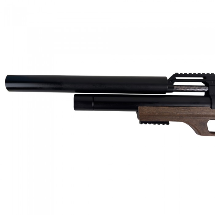 Газовый ресивер в форме цилиндра, который размещается под стволиком, вмещает 365 куб. сантиметров воздуха. Давление при полной закачке баллона достигает 200 атмосфер.
