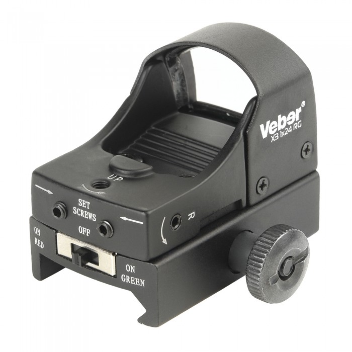 Коллиматорный прицел Veber Храбрый Заяц 1х24 RG открытого типа с объективом 24х16 мм предназначен для ускорения процесса прицеливания на коротких дистанциях. Фиксированное увеличение 1х позволяет стрелку вести цель не прищуриваясь, двумя глазами, а прицельная марка в виде подсвеченной точки красного или зеленого цвета – быстро сделать точный выстрел. Легкий и компактный прицел устанавливается на планку Weaver или Picatinny, подойдет для установки как на пневматический пистолет, так и на охотничье оружие небольшого калибра.