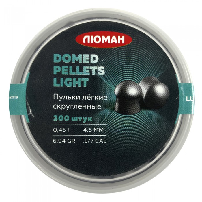 Пули Люман Domed Pellets light 0,45 г - круглоголовые пневматические свинцовые пули с гладкой поверхностью. Штампованные свинцовые пули с высокой точностью и кучностью. Предназначены для развлекательной стрельбы на дистанциях до 20 метров. Данные пули предназначены для пистолетов и винтовок малой мощности. Калибр - 4,5 мм. Упаковка - пластиковая банка 300 шт.
