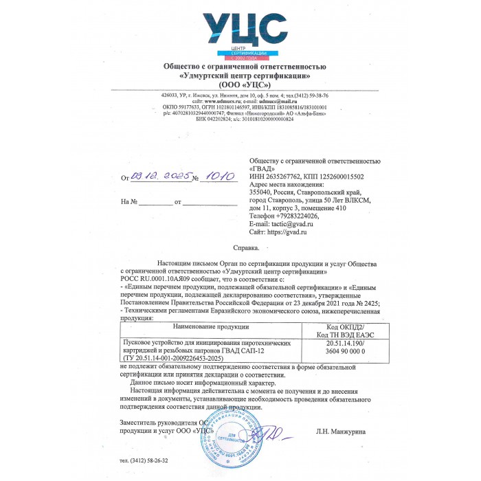 ГВАД САП-12 – универсальное однозарядное пусковое устройство российского производства. К его основным особенностям относятся современный компактный дизайн, надежный УСМ и быстросъёмный механизм смены зарядов. САП-12 – первое устройство бренда ГВАД, вместе с ним компания анонсировала производство собственных картриджей и аксессуаров.