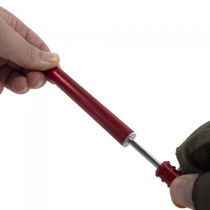 Запуск осуществляется путем оттягивания пружины ударника, что приводит к разбитию капсюля патрона. Ручка ударника выполнена таким образом что бы не выскальзывала из рук в перчатках и без них, а так же в мокрых руках.