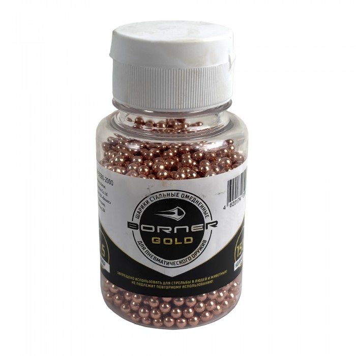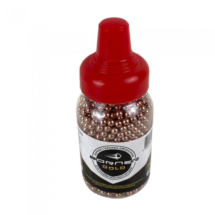 О главном достоинстве шариков линейки Gold можно узнать из их названия. Стальные боеприпасы рассматриваемой серии покрывают медной оболочкой - указанный материал обладает меньшей твердостью, чем ствол пневматики. Следовательно, омедненная пуля не оставляет царапин и забоин в его канале.