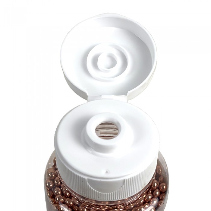 Заряды Борнер упакованы в пластиковую тару, закрытую крышкой дозатором - это решение упрощает засыпание боеприпасов в бункерные магазины. Для извлечения снарядов потребуется открыть крышку носика и перевернуть банку.