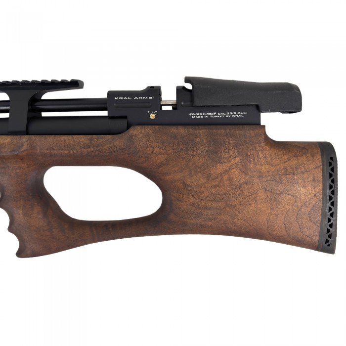 Пневматическая винтовка Kral Puncher Breaker 3 дерево 5,5 мм – это многозарядная модификация для спортивной стрельбы и охоты от турецкой компании Kral Arms. Модель относится к РСР-пневматике, пуля получает энергию от ресивера, в котором находится воздух под высоким давлением. Заправка ресивера производится либо ручным насосом, либо с использованием заправочного баллона.