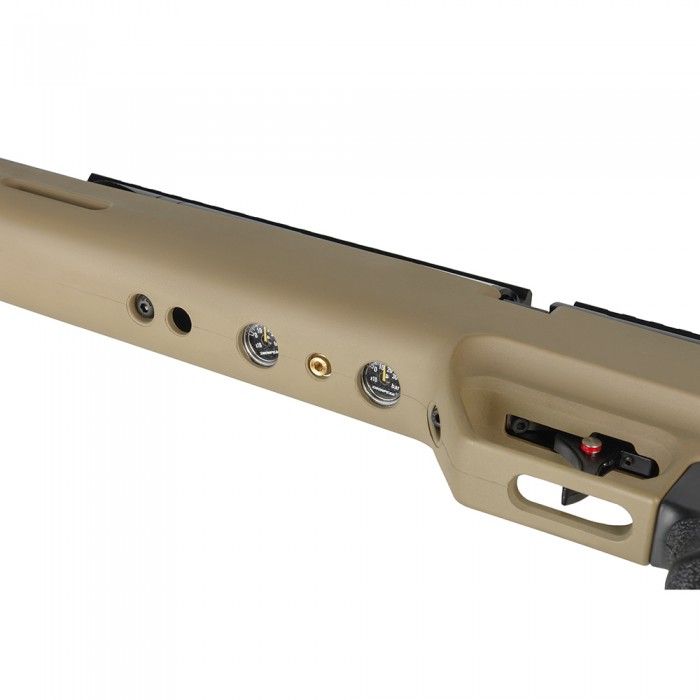 Для использования винтовки необходима предварительная накачка резервуара воздухом с помощью ручного насоса или баллона высокого давления. Для контроля давления в резервуаре предусмотрен манометр рядом с заправочным портом.
