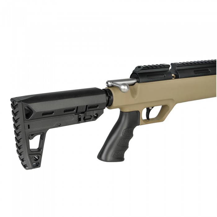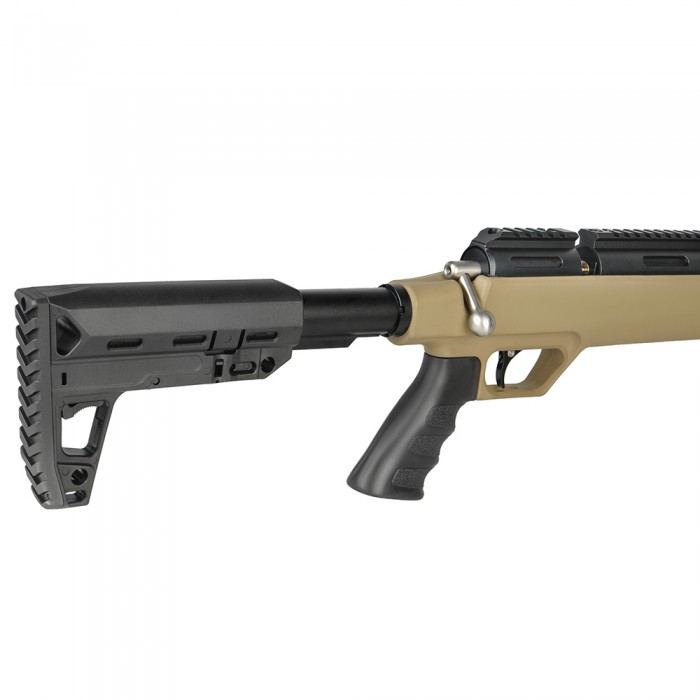 Приклад BLACK STRIKE P06 выполнен из ударопрочного полимера и имеет телескопическую конструкцию. Возможность настраивать длину приклада под индивидуальные особенности стрелка позволяет минимизировать отдачу, повысить контроль и сделать использование винтовки более комфортным и безопасным.