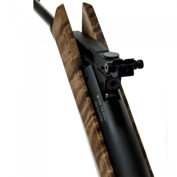 Калибр остался стандартным для винтовок такого типа - 4.5 мм. Боеприпас досылается вручную при взведении, для чего необходимо обхватить дульную часть ствола второй рукой и приложить усилие, направленное вниз. В процессе происходит раскрытие казенной части, а также сжатие боевой витой пружины, отвечающей за компрессию воздуха.