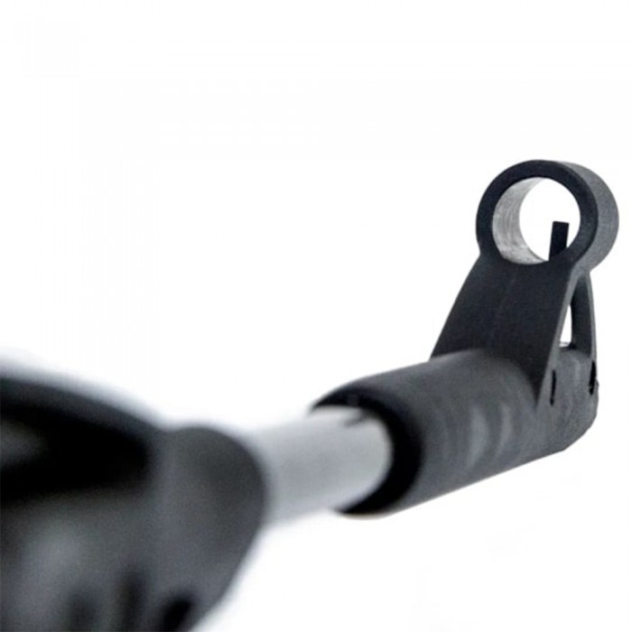 После заряжания ствол возвращается в исходное состояние, одновременно с чем срабатывает автоматический предохранитель, который не дает случайно нажать на триггер. Переключатель внесен внутрь спусковой скобы, следовательно, снятие блокировки проводится указательным пальцем. Для наведения на мишень представлены стандартные механические приспособления в виде мушки и целика, причем последний настраивается по двум осям - дополнительно можно по усмотрению дооснастить экземпляр оптикой под «Ласточкин хвост».