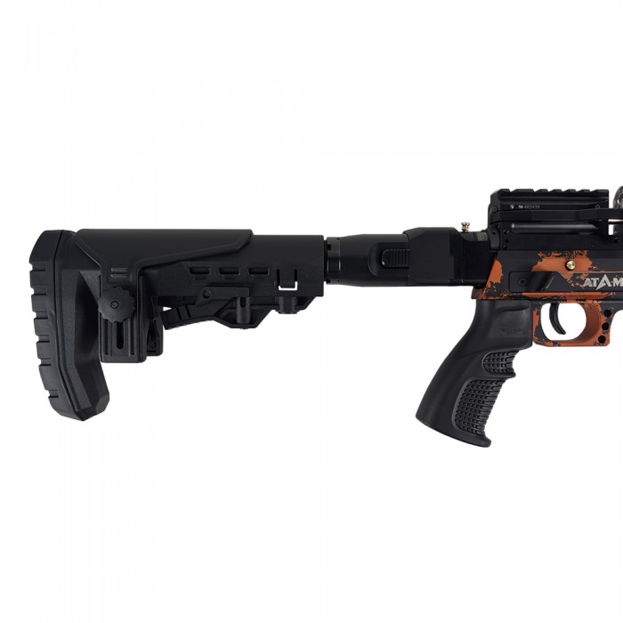 PCP винтовка Ataman серии Ультра Компакт характеризуется общим размером 910 миллиметров. При этом габарит изделия может сокращаться путем складывания приклада, что упрощает транспортировку и хранение оружия. Сам плечевой упор имеет направляющую трубу, двигаясь по которой выставляется предпочитаемое положение под антропометрию владельца.