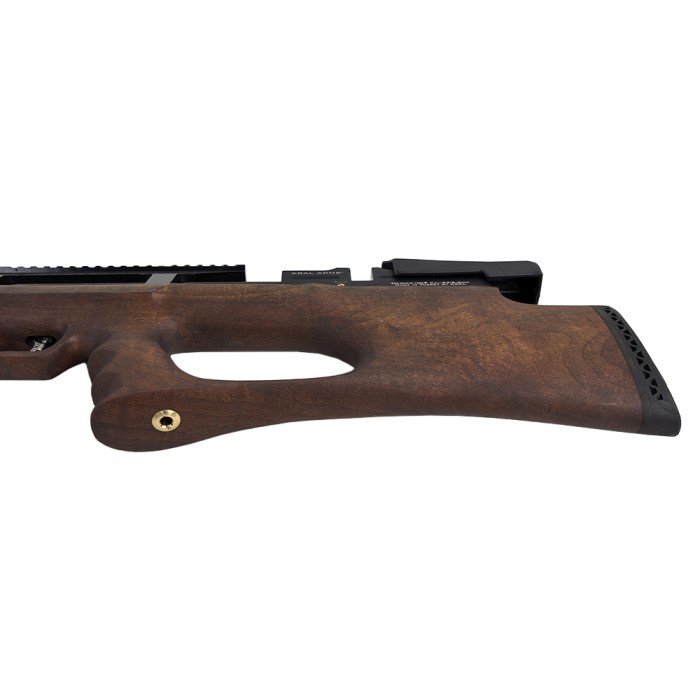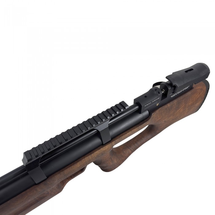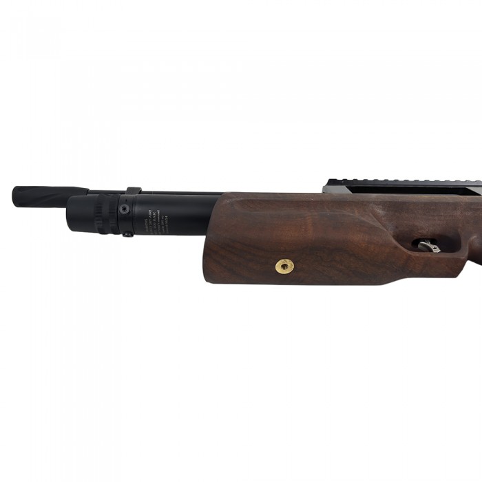 Наполнение ресивера осуществляется насосом или специальным заправочным баллоном. Компактность и эргономичность данной винтовки обеспечивается благодаря использованию конструкции «Булл-пап», подразумевающей расположение устройства спуска дальше от плеча пользователя, чем спусковой крючок. Магазин винтовки представлен многозарядным барабаном на 14 боеприпасов, стреляет оружие свинцовыми пулями 4,5 мм. Ствол нарезного типа. Скорость пули после усиления (замены штатного клапана) будет составлять порядка 380 м/с.